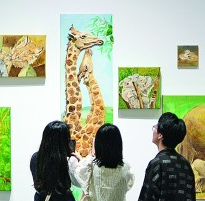学生在2023南通大学艺术学院毕业展上参观。徐培钦摄/光明图片