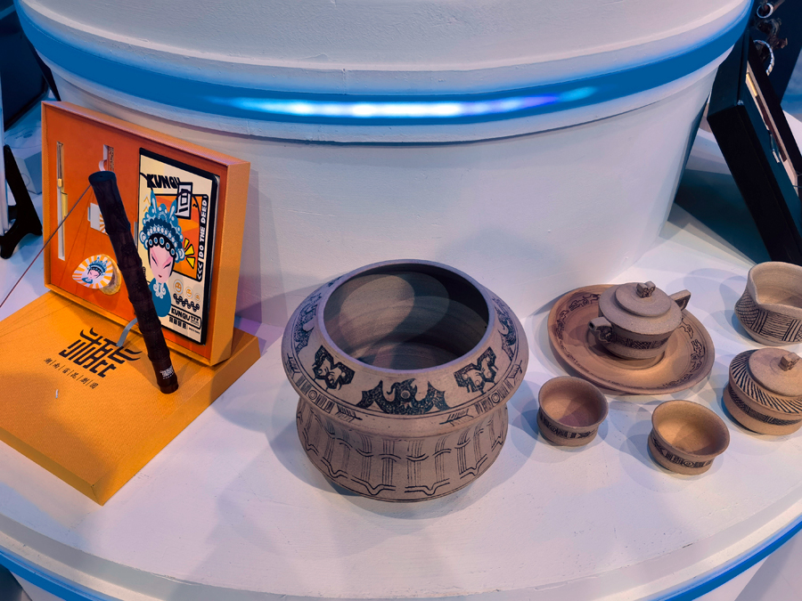 郴州展馆展出的非遗文创产品。新华网刘扬摄