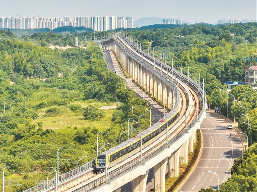 6月28日,地铁列车行驶在长株潭城轨西环线上。湖南日报全媒体记者 郭立亮 摄