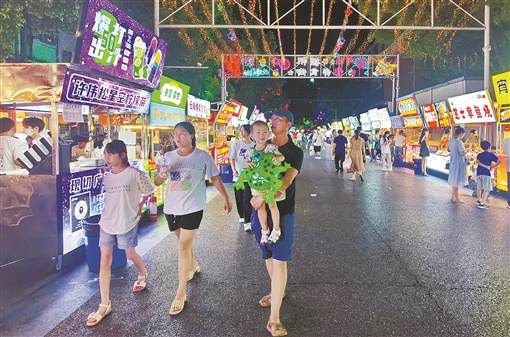 7月10日晚,长沙市芙蓉区扬帆夜市,众多市民游客在此“逛吃”。
