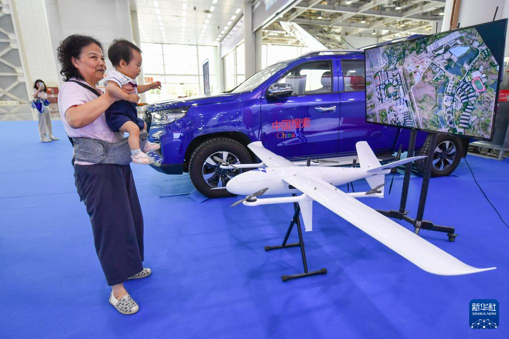 7月12日,参观者在中国新媒体技术展上参观无人机设备。新华社记者 陈泽国 摄