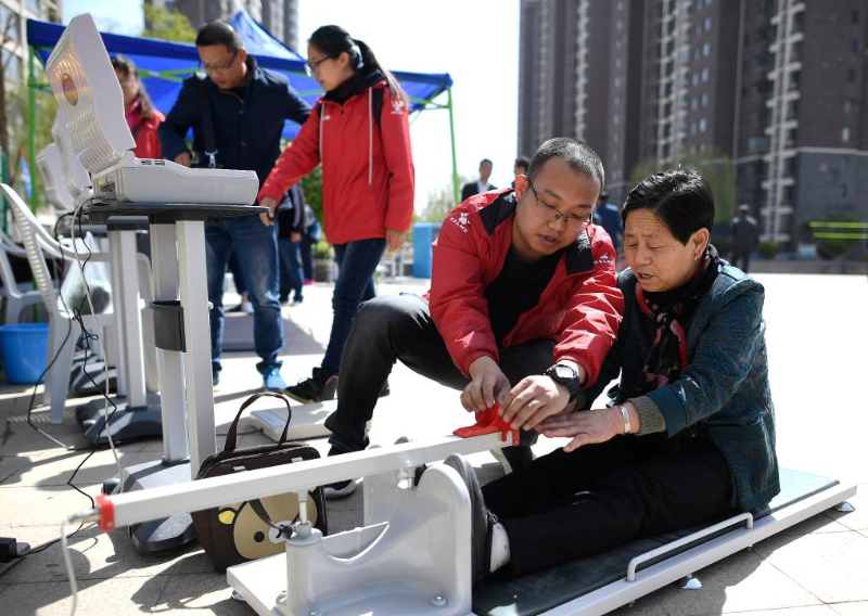 资料图:2018年4月14日,社区居民在进行体质监测。新华社记者王鹏摄