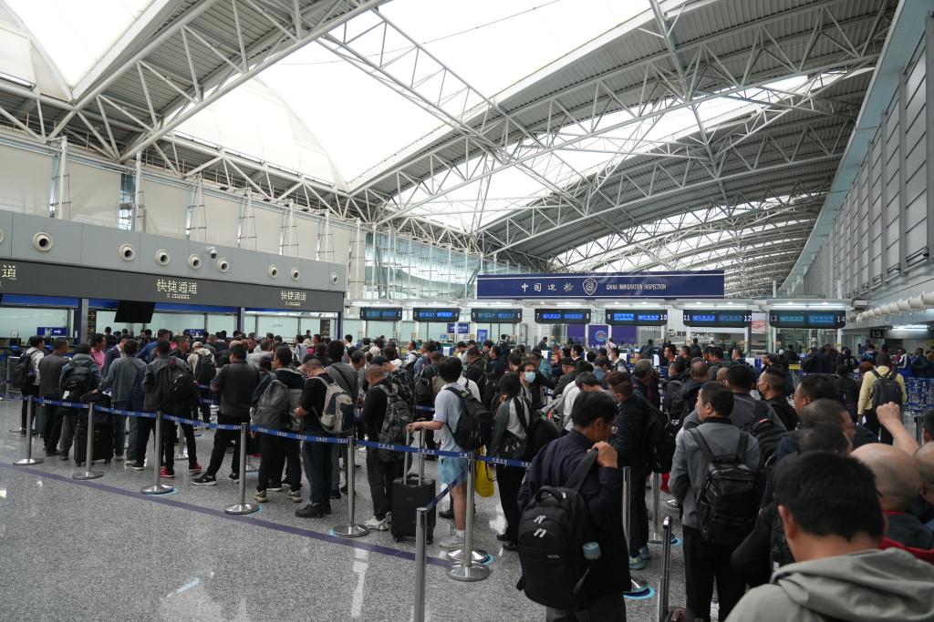 1月17日,广州白云机场口岸T1航站楼入境大厅人头攒动。(白云边检站供图)
