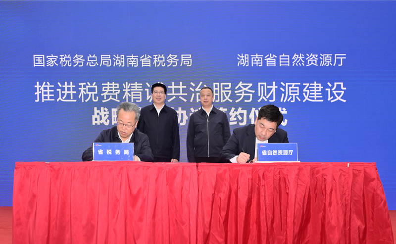 4月1日,国家税务总局湖南省税务局、湖南省自然资源厅签署《推进税费精诚共治服务财源建设战略合作协议》,探索推进自然资源领域税费精诚共治、服务“三高四新”财源建设机制,助力湖南经济社会高质量发展。