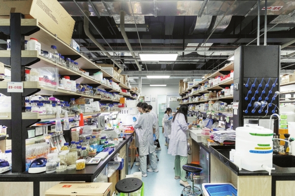 课题组成员遇到困难时,可立即到5楼与企业工程师展开交流,工程师则可随时向课题组提出需求。一次楼上楼下的“串门”,就可能激发一个科研创意,打通一个转化堵点。目前,钟超团队的公司已经成功从工程生物产业创新中心“毕业”,入驻合成生物学产业园。