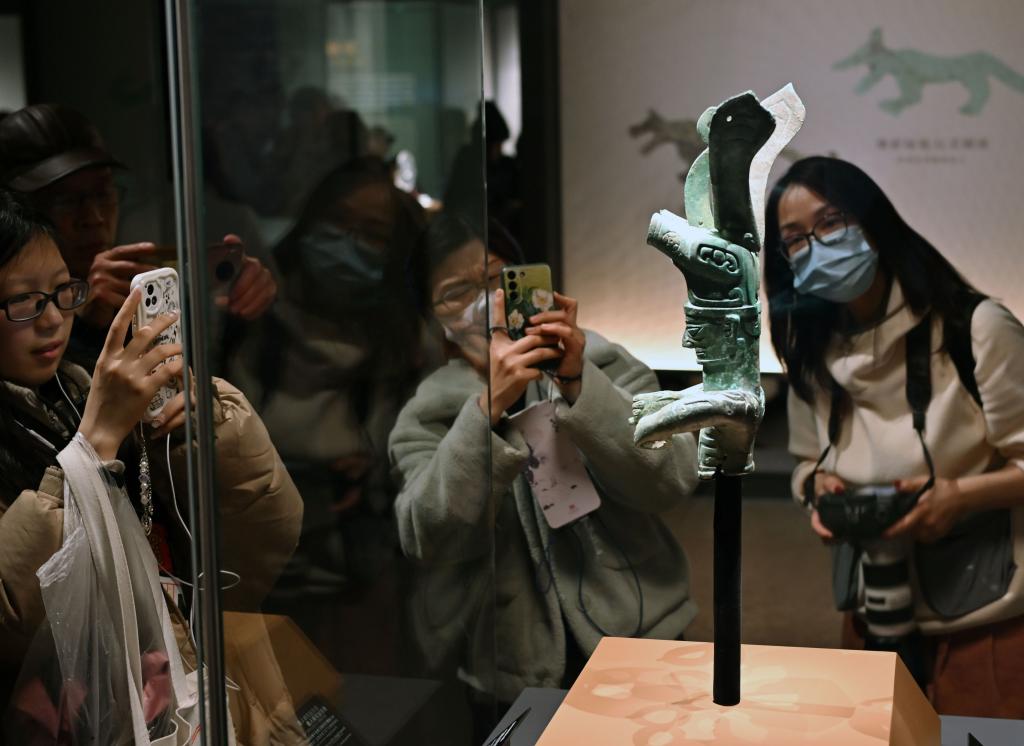 观众在上海博物馆东馆参观“星耀中国:三星堆·金沙古蜀文明展”。新华社记者刘颖 摄