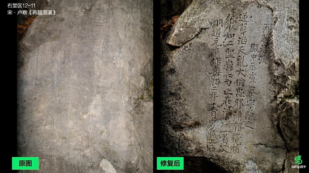 “当原本用肉眼难以辨识的碑文变得清晰可辨时,我们宛若穿越回数百年前,看着来来往往的文人墨客在崖壁上挥毫……”向记者展示摩崖石刻的高清复原图像时,孔皓激动不已。