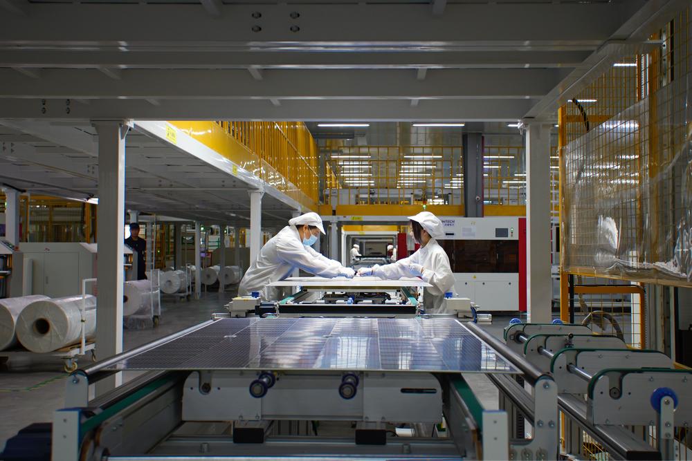 自动焊接、自动敷设、AGV小车自动“运”货……走进滁州隆基乐叶光伏科技有限公司生产车间,一条自动化单晶组件制造生产线正高效运转中。