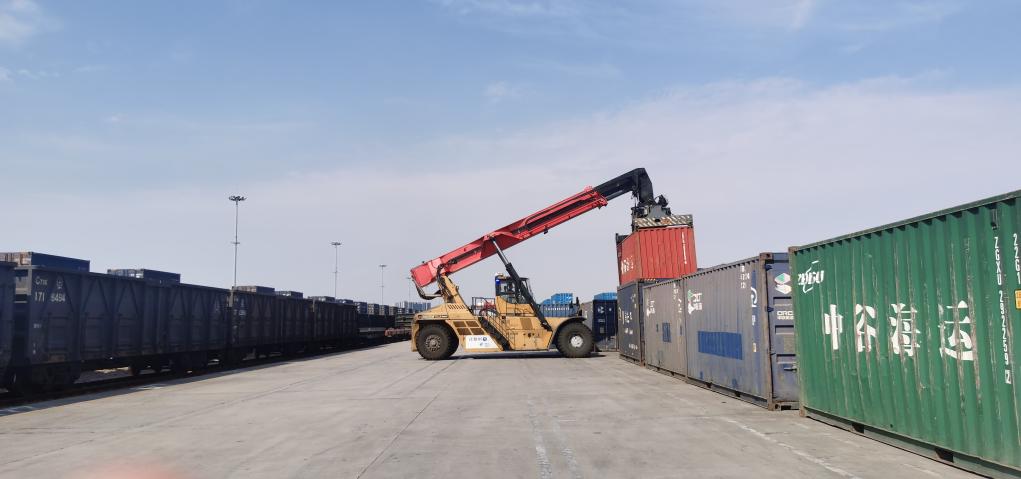 6月18日服务于中欧班列开行的山西中鼎物流园内作业场景。(中国铁路太原局集团有限公司供图)