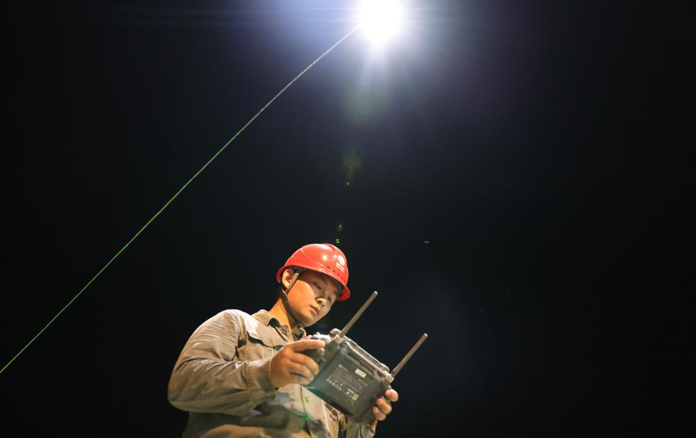 在堵口作业现场,刘子翔负责操作系留式无人机,为施工人员提供夜间照明。他时刻注意风向、风速,根据施工人员的需求,及时调整无人机的位置,确保“照得见、照得亮”。