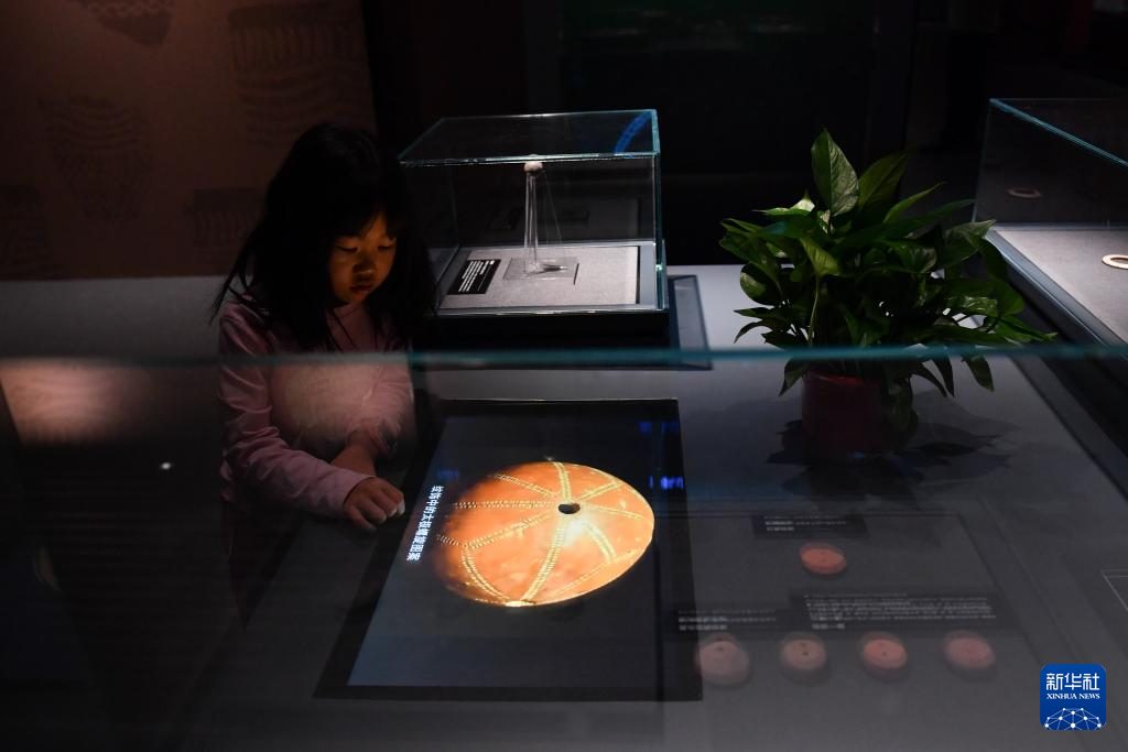 5月10日,游客在岳阳市博物馆观看视频。