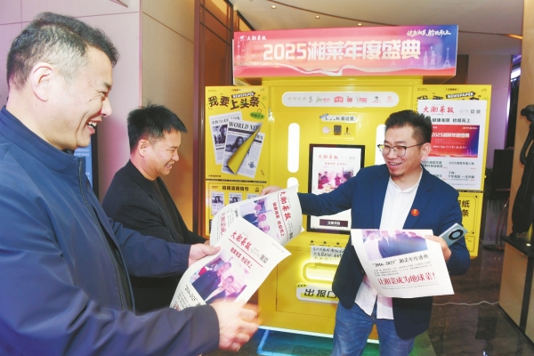 12月8日,2025湘菜年度盛典在长沙启幕。图为观众在体验《大湘菜报》推出的“我要上头条”互动打卡。湖南日报全媒体记者 徐行 戴厚存 摄影报道