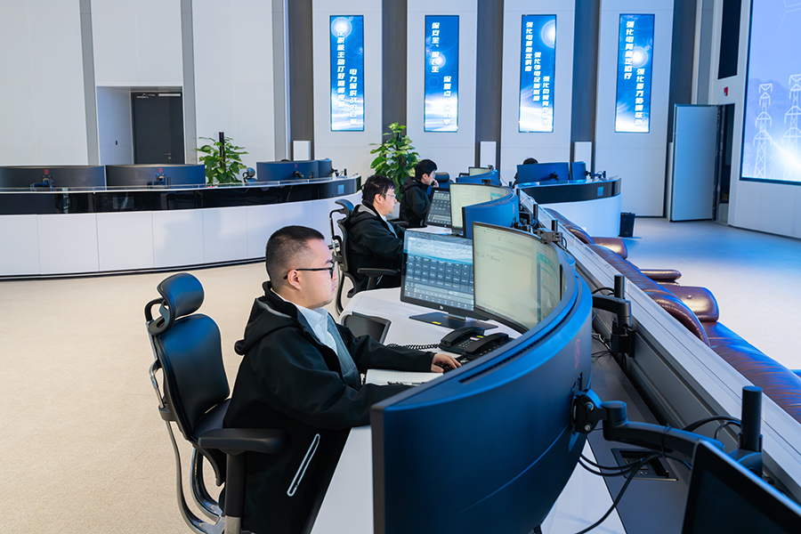 2026年1月1日0:30,国网长沙供电公司调控中心调度员正坚守在电网运行的第一线,以专业与责任守护着电网安全稳定运行。新华网发 石磊摄
