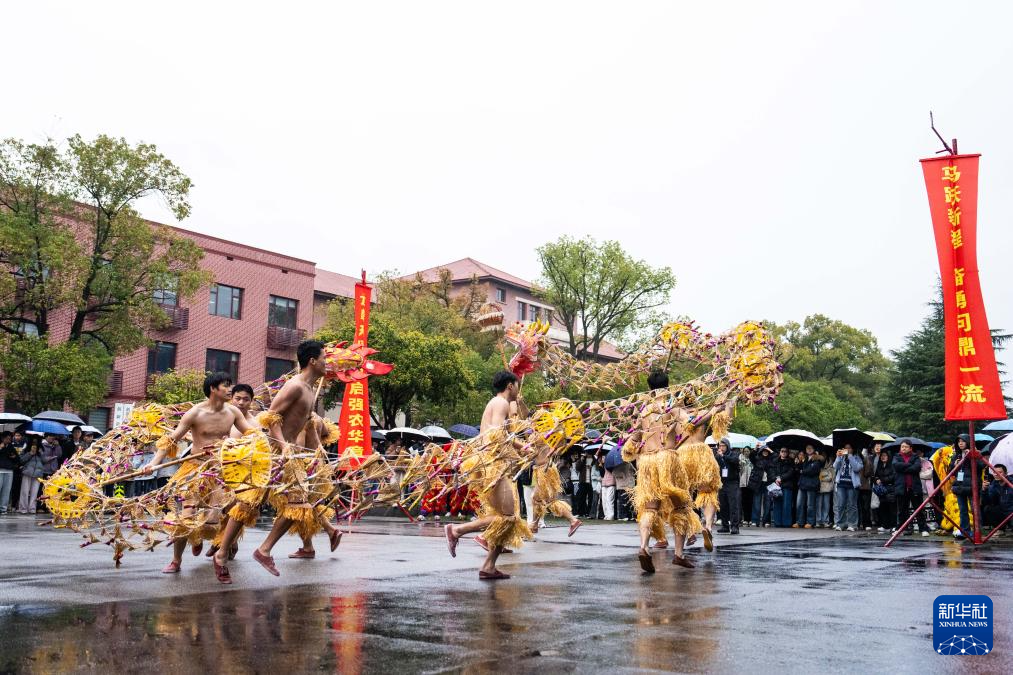 3月19日,学生在湖南农业大学进行舞龙表演。新华社记者 陈思汗 摄