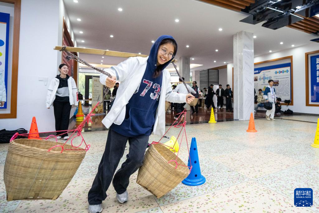 3月19日,学生在湖南农业大学参加农趣运动游戏——竞速搬运。新华社记者 陈思汗 摄pagebreak