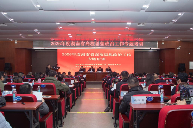 新华网长沙3月26日电(记者谢樱)3月25日上午,2026年度湖南省高校思想政治工作专题培训在长沙举办。本次培训由中共湖南省委教育工委、湖南省教育厅主办,采取线下线上相结合的方式开展。主会场设长沙理工大学国际学术交流中心科技报告厅,各高校设分会场,近千名高校思政工作战线干部和教师参加培训。