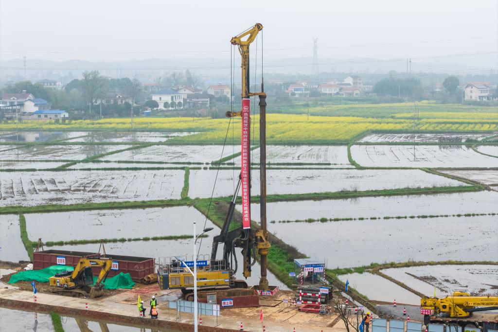 新华网长沙3月27日电(陈思汗 鲁林)27日,伴随着旋挖钻机的阵阵轰鸣,由中铁四局承建的宜常高铁湖南段全线首根桩基正式开钻,标志着宜常高铁正式进入主体工程施工阶段。
