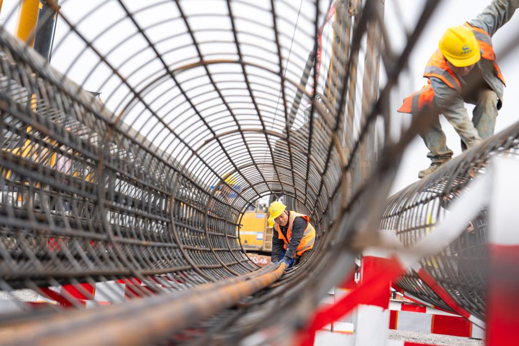 此次开钻的首根桩基位于左线跨黔张常特大桥,设计桩径1米,桩长31米,采用旋挖钻工艺施工。跨黔张常特大桥全长4492.24米,跨既有黔张常联络线、邵花河及太阳大道,设计桩基769根。