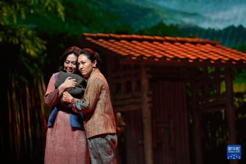 3月27日,演员在中南大学天心校区礼堂演出2025版话剧《红岩》。