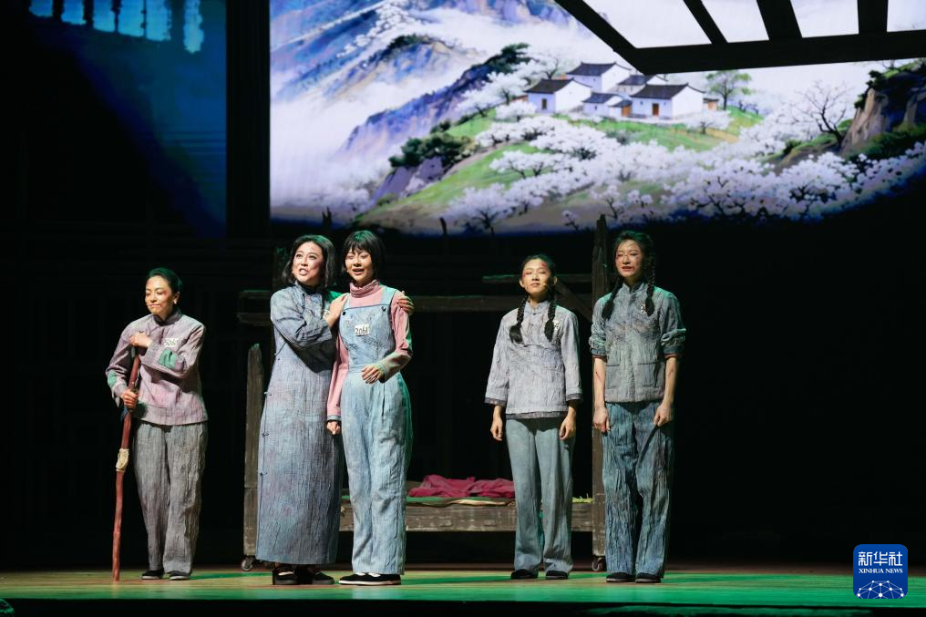 3月27日,演员在中南大学天心校区礼堂演出2025版话剧《红岩》后谢幕。