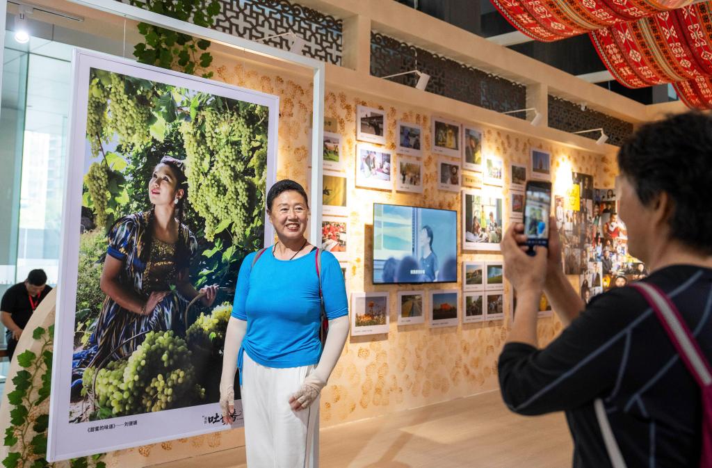 4月9日,观众在湖南省博物馆参观“我的吐鲁番”摄影展时拍照。新华社记者 陈思汗 摄pagebreak